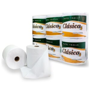 Papel Toalla Clasica Bobina en Blanco Pqt. 6 x 300 mts.