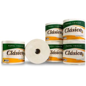Papel Toalla Clasica Bobina en Blanco Pqt. 6 x 150 mts.